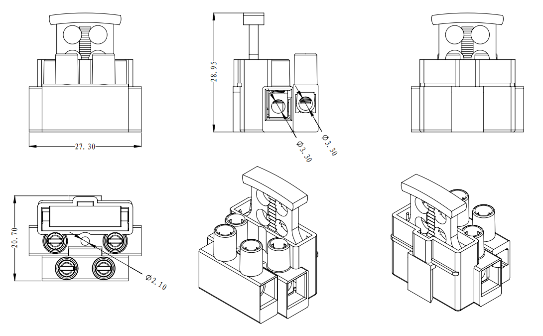 | 連接容量 | 實芯線 | 2.5-4.0mm2 | 0.5-4.0mm2 |
