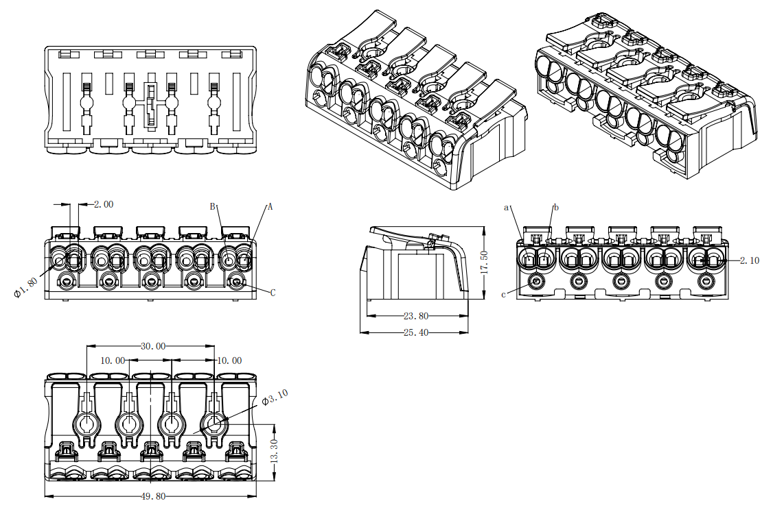 | B孔 | 實芯線 | 0.5-1.5mm2 | AWG 16-20 |