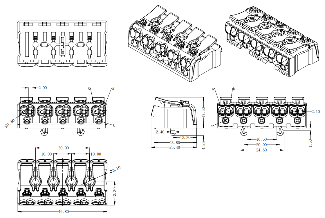 | 工廠側 | A孔 | 實芯線 | 0.5-2.5mm2 | AWG 14-20 |