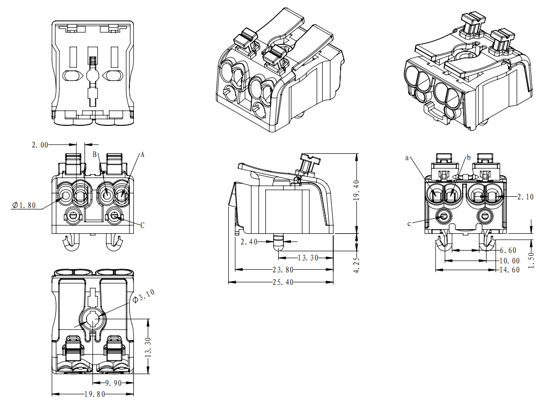 | 工廠側(cè) | A孔 | 實(shí)芯線 | 0.5-2.5mm2 | AWG 14-20 |